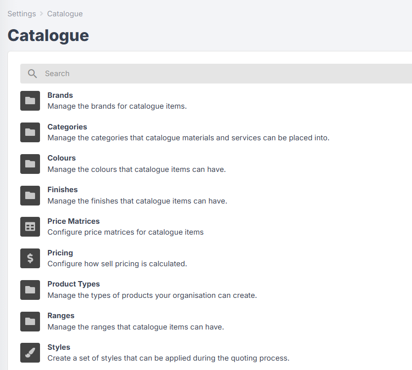 Go to Settings > Catalogue to manage your preferences for catalogue materials, product types, etc.