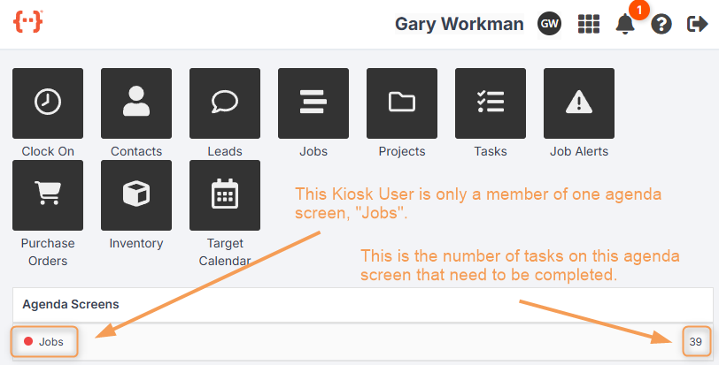 Your agenda screen is a to-do list of all the tasks needing to be completed by you, and any other members assigned to that screen. Your agenda screens should be your number one focus when using Jobman. Always check your agenda screen to see which task you need to complete next!