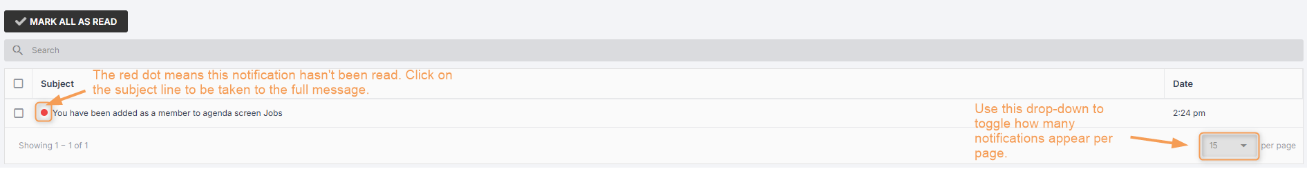 When all your notifications are marked “read”, the orange and red dots will disappear from your screen: