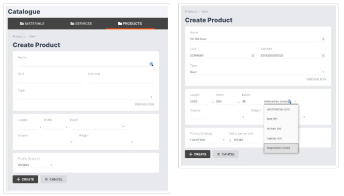 Tip: When entering product dimensions, use the most common size your product is made in. You can always adjust dimensions for individual products inside a quote.