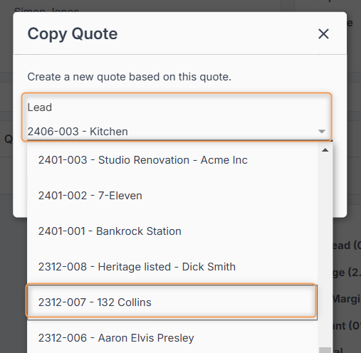 You can make a copy of a created quote and send to either the same lead or a different lead. This is useful when you have a standard product that you quote for consistently, or when you want to re-send a quote but with minor adjustments.