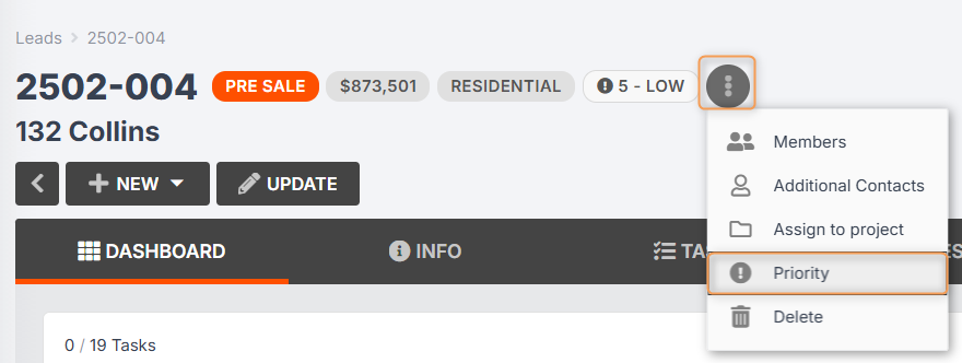 You can set a priority level as the default, meaning it will automatically be assigned to all leads/jobs when they are created.