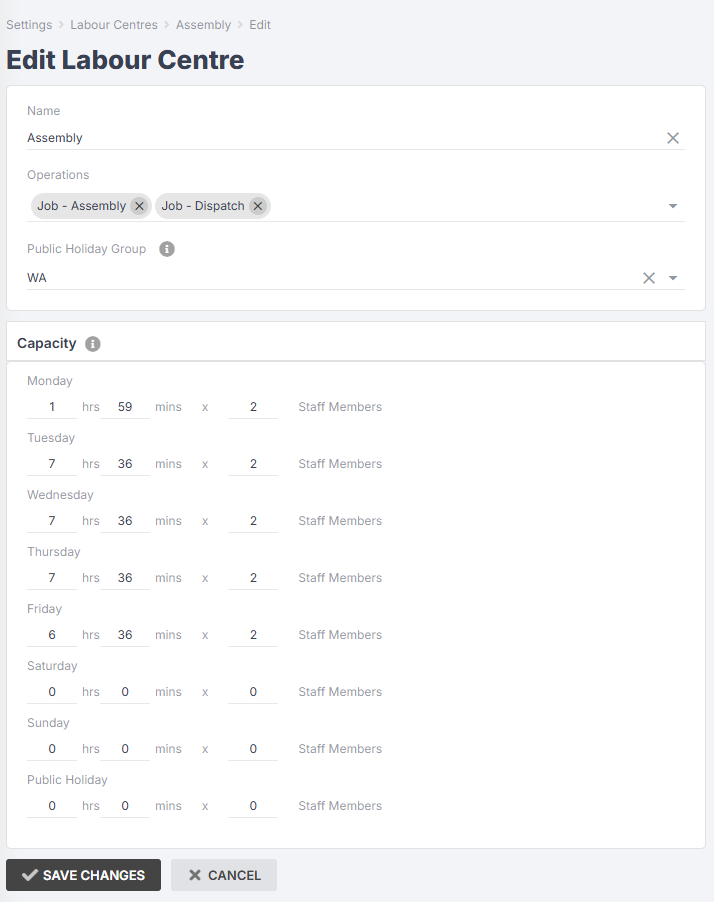Tip: When you create a labour centre and link it to one or more operations, your changes will automatically be reflected in Settings > Operations: