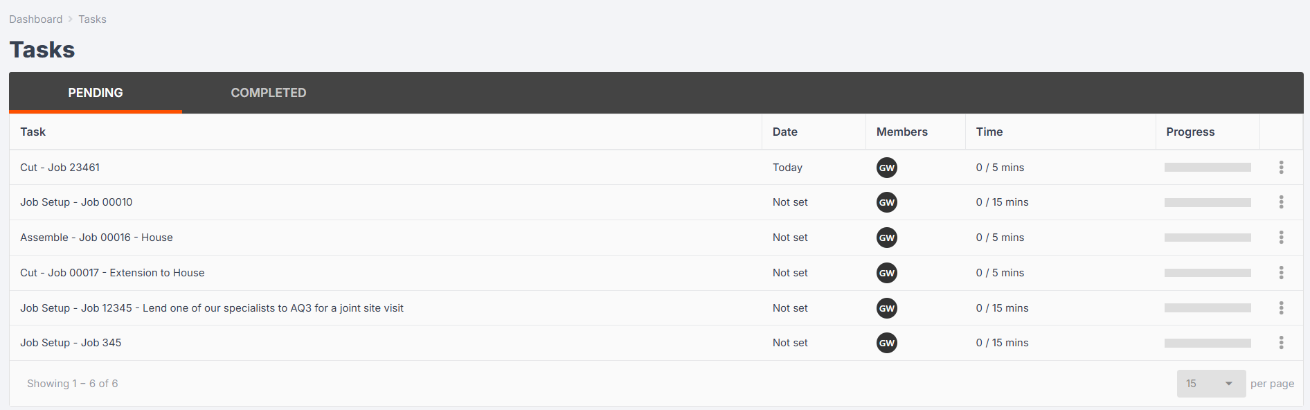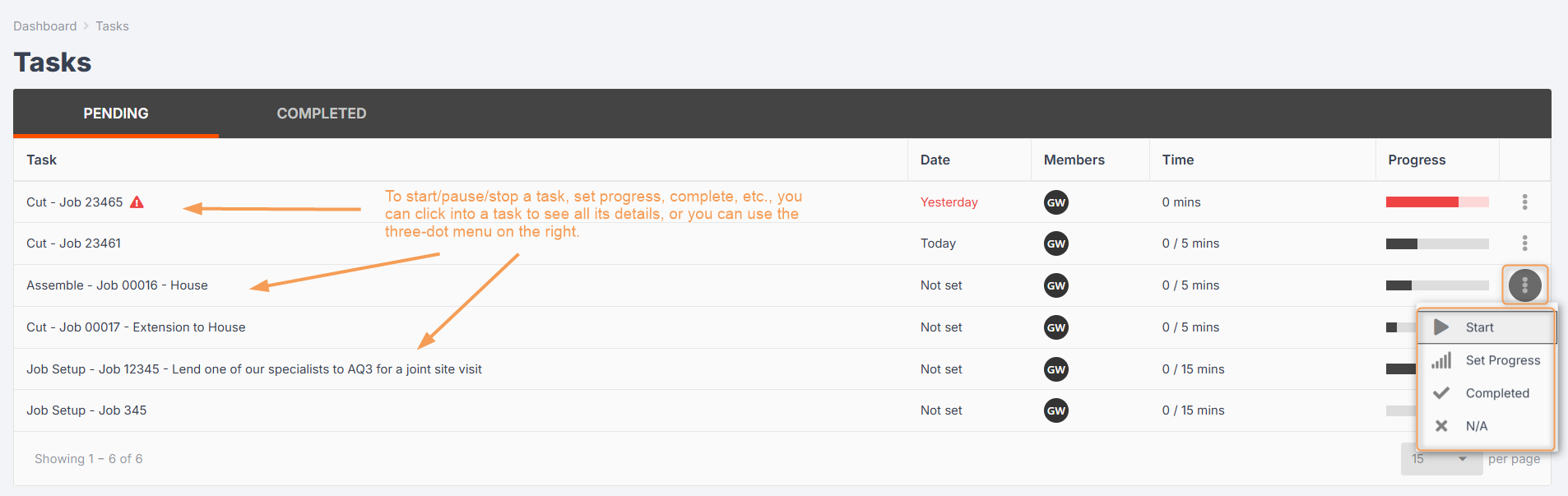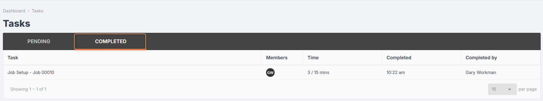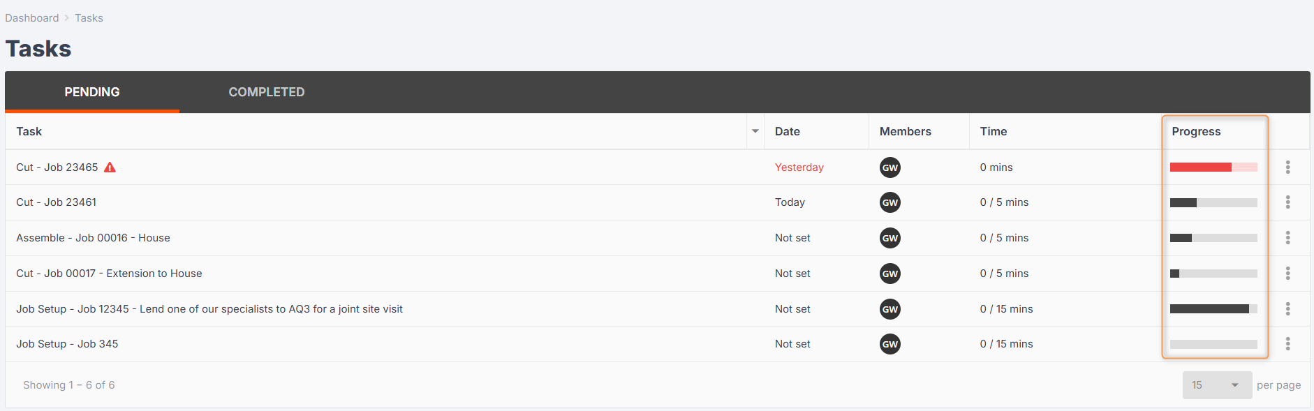 This will then show in the Tasks Tab so the whole team can get an accurate idea of where the job is up to.